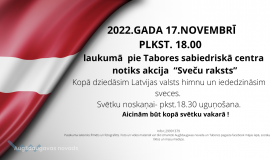 17. novembrī plkst. 18.00 laukumā pie Tabores sabiedriskā centra notiks akcija “Sveču raksts”.
