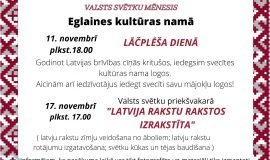 17. novembrī plkst. 17.00 Eglaines kultūras namā notiks pasākums “Latvija rakstu rakstos izrakstīta”.