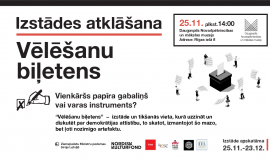 No 25. novembra līdz 23. decembrim Daugavpils Novadpētniecības un mākslas muzejā būs skatāma izstāde “Vēlēšanu biļetens. Papīra gabaliņš vai varas instruments?” Izstāde veltīta Baltijas jūras reģiona valstu vēlēšanu biļetenu vēsturei un to izmaiņām laika gaitā. Izstādes atklāšana 25. novembrī plkst. 14.00.