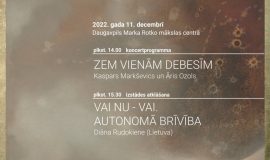 2022. gada 11. decembrī plkst. 14.00 Daugavpils Marka Rotko mākslas centrs aicina uz Latvijas radio ētera personības, mūziķa un Latvijas Bērnu atbalsta fonda vadītāja Kaspara Markševica un džeza virtuoza, ģitārista, mūzikas pedagoga Āra Ozola kopīgi veidoto koncertprogrammu “Zem vienām debesīm”. Koncerta muzikālais vēstījums, kas ir balstīts klausītājiem zināmās un arī piemirstās latviešu melodijās, sasaucas ar cerību pēc miera mūsdienu trauksmainajā pasaulē un vienām skaidrām, neatkarīgām debesīm.