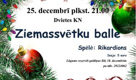 25. decembrī plkst. 21.00 Dvietes kultūras namā norisināsies Ziemassvētku balle.