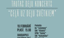 19. februārī plkst. 15.00 notiks tautas deju koncerts “Ceļā uz Deju svētkiem” gatavojoties XXVII Vispārējiem latviešu Dziesmu un XVII Deju svētkiem. Koncertā piedalīsies Daugavpils valstpilsētas pašvaldības iestāžu kolektīvi: Vienības nama deju ansamblis “Laismeņa”, vidējās paaudzes deju kolektīvs “Saime”, senioru deju kolektīvs “Atbalss”, Krievu kultūras centra tautas deju kolektīvs “Uzori” un Poļu kultūras centra tautas deju kolektīvs “Kukulečka”.