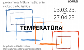 No š.g. 03. marta līdz 27. aprīlim Latgales Centrālās bibliotēkas (LCB) Daiļliteratūras un literatūrzinātnes sektorā (Rīgas ielā 22a, Daugavpilī) ir skatāma Daugavpils Universitātes (DU) profesionālās maģistra studiju programmas (PMSP) Māksla maģistrantu radošo darbu izstāde TEMPERATŪRA.