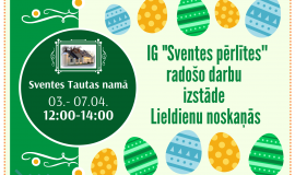 No šā gada 3. līdz 7. aprīlim Sventes Tautas namā būs skatāma interešu grupas “Sventes pērlītes” radošo darbu izstāde Lieldienu noskaņās.