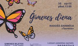 30. aprīlī plkst. 13.00 Daugavpils Novadpētniecības un mākslas muzejā “Ģimenes dienas” ietvaros notiks radošā darbnīca “Taurenis”. Tā būs vienreizēja iespēja ģimenēm ar bērniem radoši pavadīt laiku un apmeklēt muzeja izstāžu un ekspozīciju zāles.