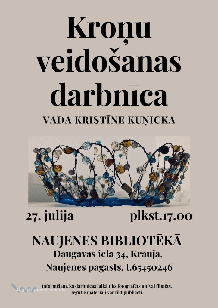 27. jūlijā plkst. 17.00 Naujenes bibliotēka aicina visus interesentus uz Kroņu veidošanas darbnīcu, ko vadīs Kristīne Kuņicka!