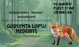 Šī gada 13. janvārī plkst. 17.00 Līksnas pagasta kultūras namā notiks amatierteātra “Maskas” iestudētā Elizabetes Haferes komēdija vienā cēlienā “Godsymta lopsu medeibys”.