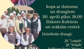 20.aprīlī pl. 18.00 Ilūkstes Kultūras un mākslas centrā koncerts ”Lašu korim 30 gadi”. Piedalīsies JK ”Latgale”, JK”Sēlpils”, folkloras kopa ”Ritam”, VA”Lilijas’.