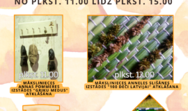 Ceļojums garām Berķenelei uz Medumiem pl.11.00 mākslinieces Annas Pommeres izstādes “Griķu medus” atklāšana, pl.12.00 mākslinieces Anneles Slišānes izstādes “100 deči Latvijai” atklāšana, pl.13.00 Biškope Gunta Some “Muzeju nakts” apmeklētājiem piedāvās dažādas medus un citu bišu produktu meistarklases, degustācijas un pl. 14.00 mākslinieciska koprades aktivitāte – “Bišu stropu apgleznošana” .
