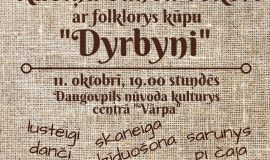 11.10.2018 @ 19:00 – 21:00 – Daugavpils novada Kultūras centrā “Vārpa” uz danču vakaru aicina folkloras kopa “Dyrbyni”.