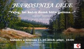 11.10.2018 – 06.11.2018 @ 00:00 – Māksliniece ir dzimusi Baltkrievijā. Tālajos 60.tajos viņas vecāki pārbrauca dzīvot uz Latviju. Tad viņai bija 10 gadi. Visa bērnība pagāja laukos pie dabas krūts. Kad Jefrosinija mācījās 7. klasē, viņa kopā ar klases biedriem aizbrauca pie Rīgas jūras līča. Jūra atstāja neizdzēšamu iespaidu uz visu dzīvi, tāpēc daudzas gleznas ir saistītas tieši ar jūras motīviem. […]