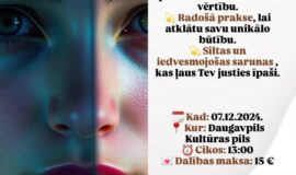 7. decembrī plkst. 13.00 Daugavpils Kultūras pilī notiks darbnīca “Esmu tāda, kāda esmu”.