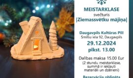 29. decembrī plkst. 13.00 Daugavpils Kultūras pilī notiks meistarklase “Ziemassvētku mājiņa”, nodarbības dalībniekiem būs iespēja izgatavot unikālu Ziemassvētku svečturi mākslinieces Jeļenas Ondzules pavadībā.