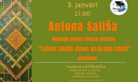3. janvārī Naujenes bibliotēkā tiks atklāta preilēnieša Antona Salīša latvju rakstu dekora izstāde “Latvju rakstu zīmes un krāsu raksti”. Izstādē būs skatāmas un atpazīstamas latviešu tautas rakstu zīmes, kas stāsta par mūsu senču ticējumiem un vērtībām.
