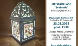 23. februārī plkst. 13.00 Daugavpils Kultūras pilī notiks stikla apgleznošanas meistarklase “Svečturis” ar mākslinieci Jeļenu Ondzuli.