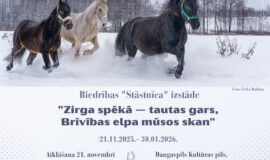 Šī izstāde ir stāsts par brīvību, kas mīt mūsos katrā — par spēju apstāties, ieelpot un atgūt līdzsvaru. Izstādē var iepazīt zirgu pasauli kā spēka, grācijas un brīvības simbolu, kas gadsimtiem caurvij latviešu kultūru un dzīves izjūtu.