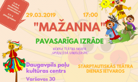 29. martā plkst. 17.00 Poļu kultūras centrā notiks teātra izrāde “Mažanna”. Teātra grupa piedāvās skatītājiem priekšnesumu, kas veltīts poļu tradīcijai – Mažannas sadedzināšanām. “Mažanna” tā ir salmu lelle, kas simbolizē ziemu un nāvi. Sakarā ar to, dedzinot lelli, mēs atvadāmies no ziemas un ar prieku satiekam pavasari.