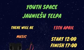 13. aprīlī no plkst. 12.00 līdz 17.00 Jauniešu neformālās izglītības centrā notiks pasākums “Youth Space” (“Jauniešu telpa”). Pasākuma programmā: mūzika, dejas, karaoke, sacensības, dažāda veida galda spēles, biljards un daudz kas cits.