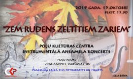 2019. gada 15. oktobrī plkst. 17.30 Poļu namā uzstāsies Poļu kultūras centra instrumentālais ansambļis. Koncertā “Zem rudens zeltītiem zariem” izskanēs poļu un latviešu tautas dziesmu apdares.