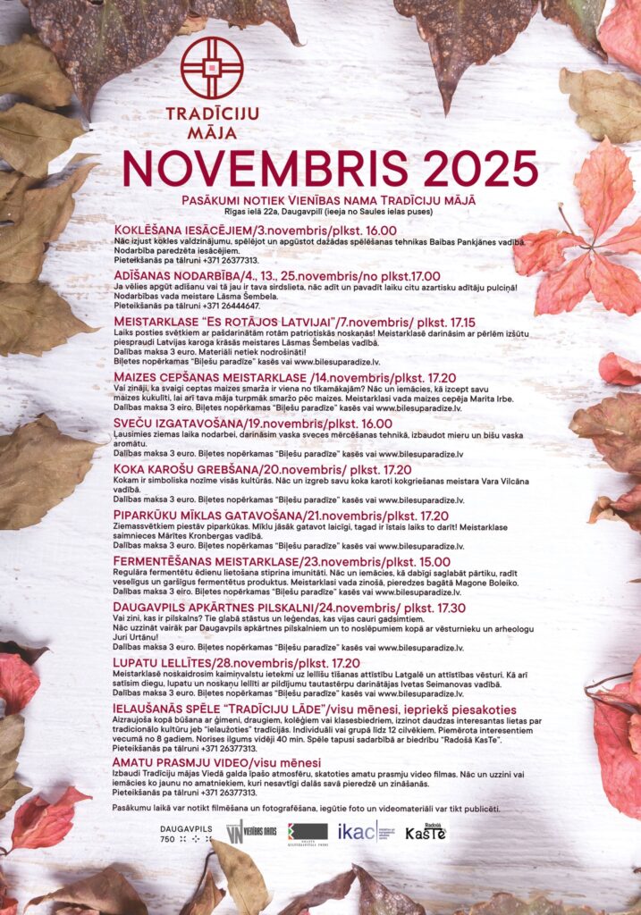 Pasākumi Tradīciju mājā 2025. gada novembrī