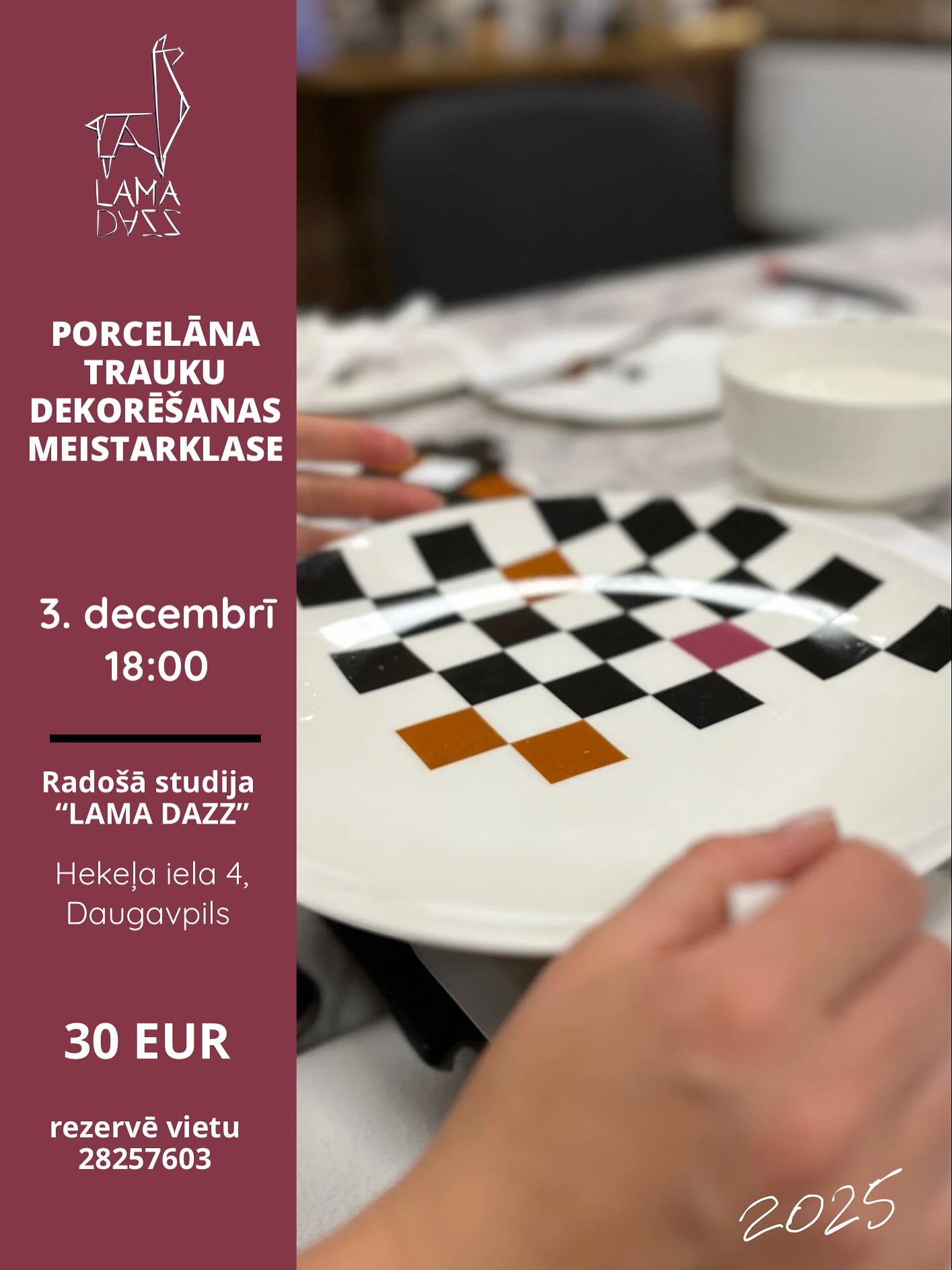 Pasākuma laikā iepazīsieties ar aizraujošu tehniku – porcelāna trauku dekorēšanu ar dekoliem un pēc tā savus darbus varēsiet lietot ikdienā, dekorēšanai tiks piedāvāti dažādā uzmēra šķīvji.