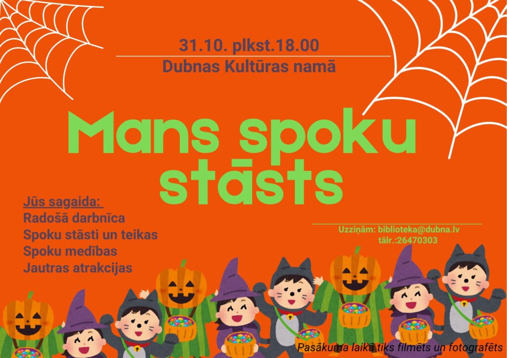 31. oktobrī plkst. 18.00 Dubnas Kultūras namā norisināsies pasākums “Mans spoku stāsts”.