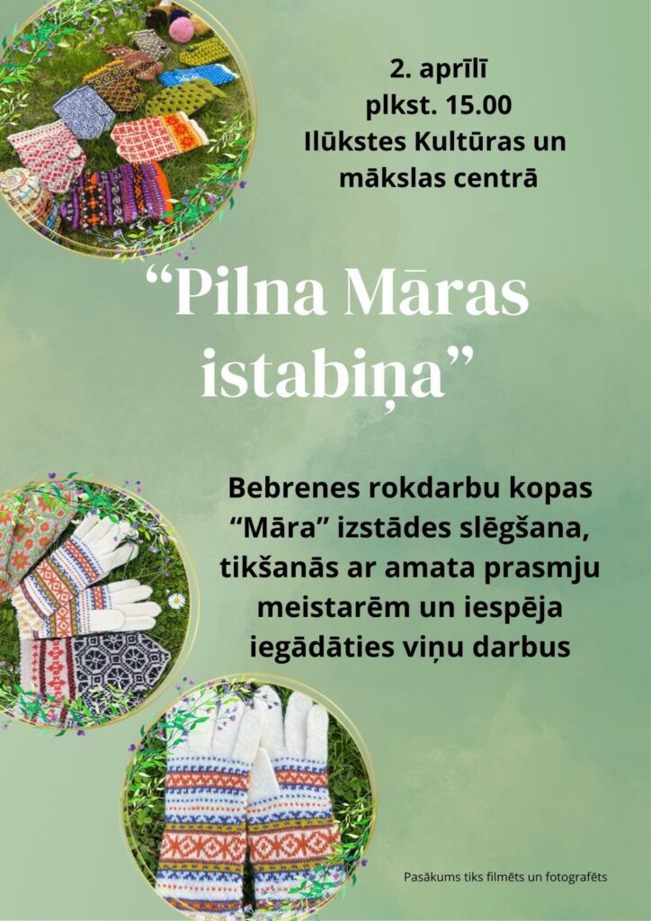 2. aprīlī plkst. 15.00 Ilūkstes Kultūras un mākslas centrā notiks pasākums “Pilna Māras istabiņa”.