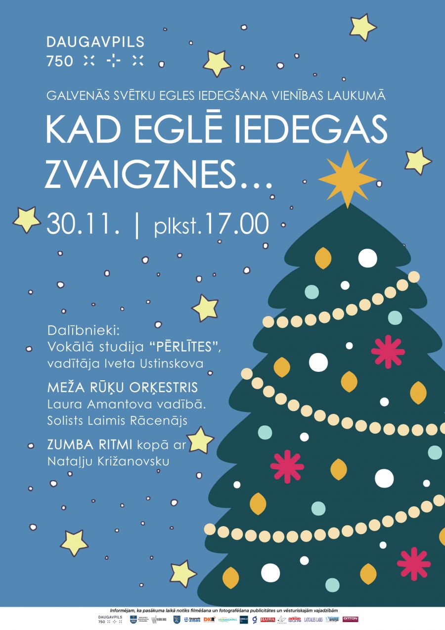 30. novembrī plkst. 17.00 Vienības laukumā, skanot Ziemassvētku laika dziesmām, iemirdzēsies pilsētas galvenā svētku egle.