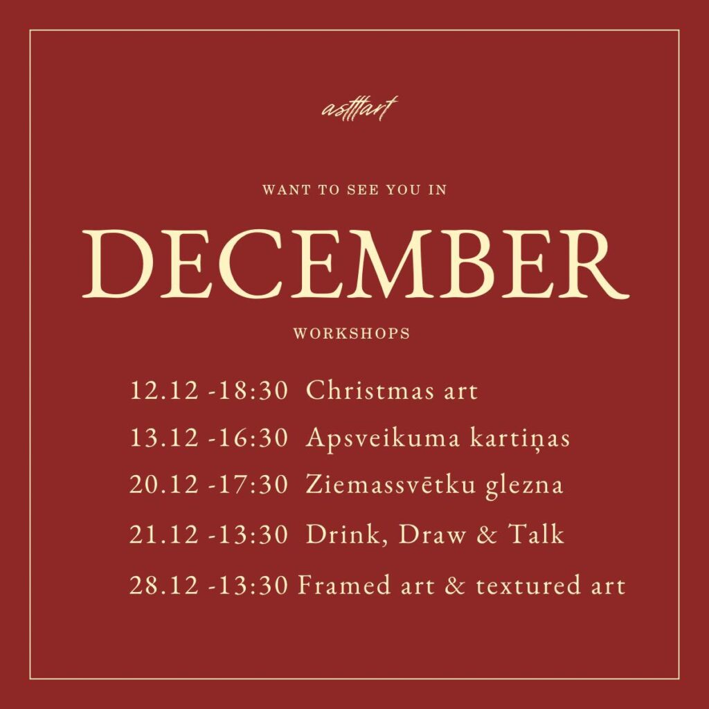 21. decembrī plkst. 13.30 studijā “Astttart” notiks kluba dalībnieku tikšanās, ja vēl neesi dalībnieks, droši arī vari pieteikties! Tikšanās laikā tiks veidots wish list (vēlmju saraksts) 2026. gadam pēc īpašas metodes. Jūs sagaida silta atmosfēra, radošums un neliels mierpilna brīdis decembra vidū.