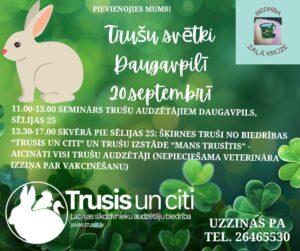 – Izstāde “Mans trusītis” kurā laipni aicināti piedalīties un parādīt savus dzīvniekus visi trušu īpašnieki un audzētāji (nepieciešama veterināra izziņa, kas apliecina vakcināciju un veselības stāvokli).