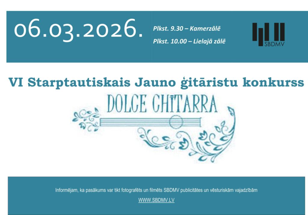 6. martā plkst. 9.30 (kamerzālē) un plkst. 10.00 (lielajā zālē) Staņislava Broka Daugavpils Mūzikas vidusskolā notiks VI Starptautiskais jauno ģitāristu konkurss.
