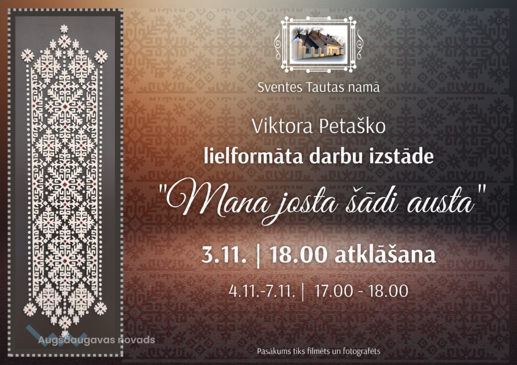 3. novembrī plkst. 18.00 Sventes Tautas namā norisināsies Viktora Petaško lielformāta darbu izstādes “Mana josta šādi austa” atklāšana.