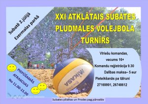 Šā gada 2. jūlijā no plkst. 9.30 Subates ezermalas parkā norisināsies XXI Atklātais Subates pludmales volejbola turnīrs.