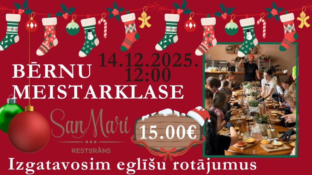 14. decembrī plkst. 12.00 bērnu kafejnīca “SanMari” aicina uz radošu Ziemassvētku eglīšu mantiņu meistarklasi. Meistarklasē bērni izgatavos divas eglīšu mantiņas – vienu savai eglītei un otru – mūsu kopīgajai kafejnīcas eglītei. Pēc meistarklases bērni uzreiz izrotās mūsu eglīti!