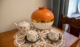 “Ļoti daudziem mājās ir saglabājušies Rīgas Porcelāna rūpnīcas ražotie trauki. Nolēmām, ka saviem klientiem atrādīsim šo skaisto kolekciju. Ikdienā pie mums esot, kafijas tasīti var saņemt tieši šajos traukos. Tā ir viena no lietām, ko cilvēki pozitīvi atzīmē, jo daudzi atceras, ka tāda, iespējams, ir bijusi arī vecmāmiņai vai bijusi tāda kāzu servīze. Tas dod papildus siltumu vietai.”
