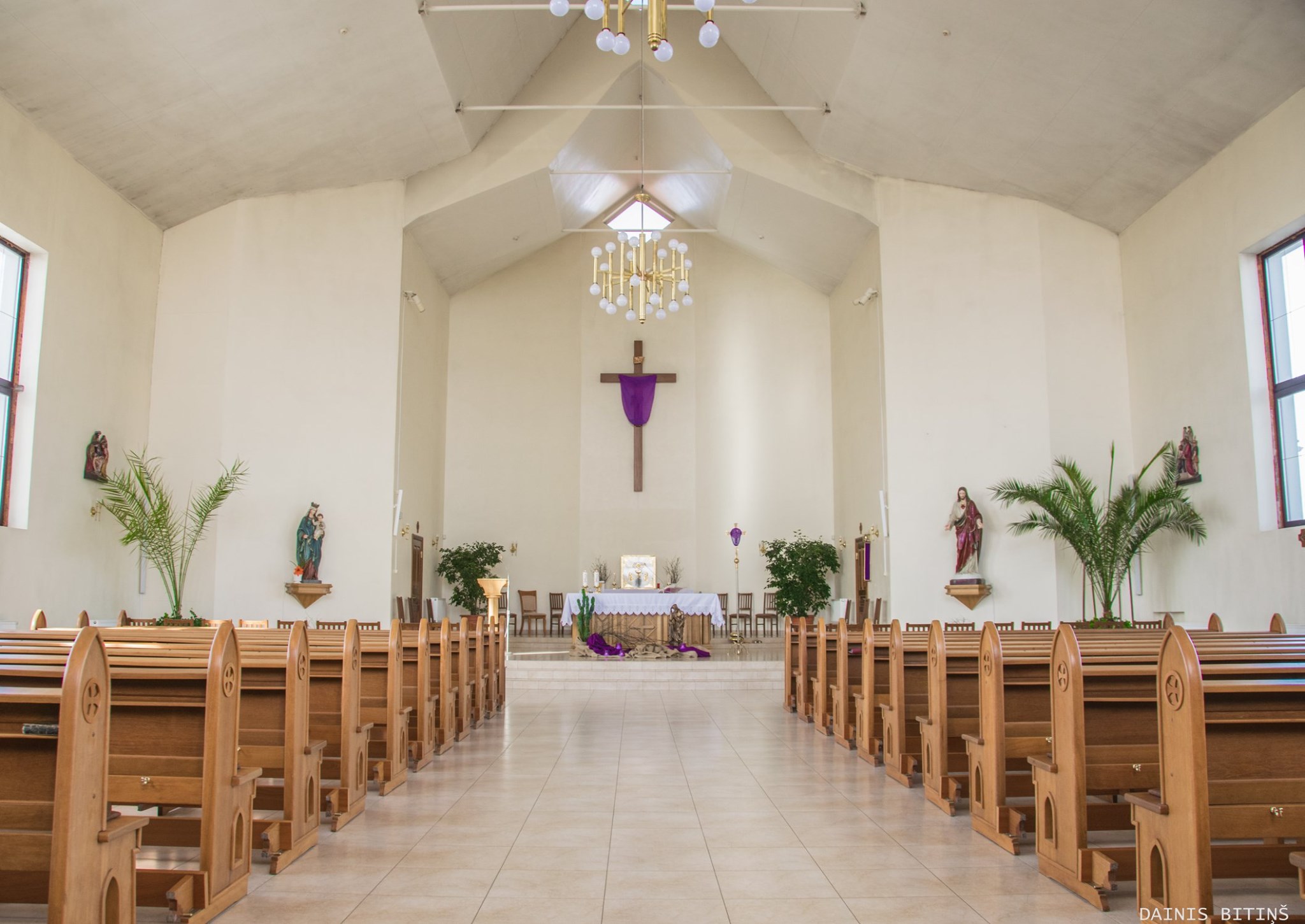 Rzymskokatolicki kościół został konsekrowany 1 października 2006 r., w dzień pamięci św. Teresy z Lisieux. W scenerii miasta kościół wyróżnia się spiczastą gotycką wieżą i jasnym wykończeniem elewacji. Ten projekt łączy klasykę i nowoczesność, bowiem świątynia otoczona jest charakterystyczną dla miasta historyczną zabudową drewnianą. Autorem projektu kościoła jest Alfreds Kokins.