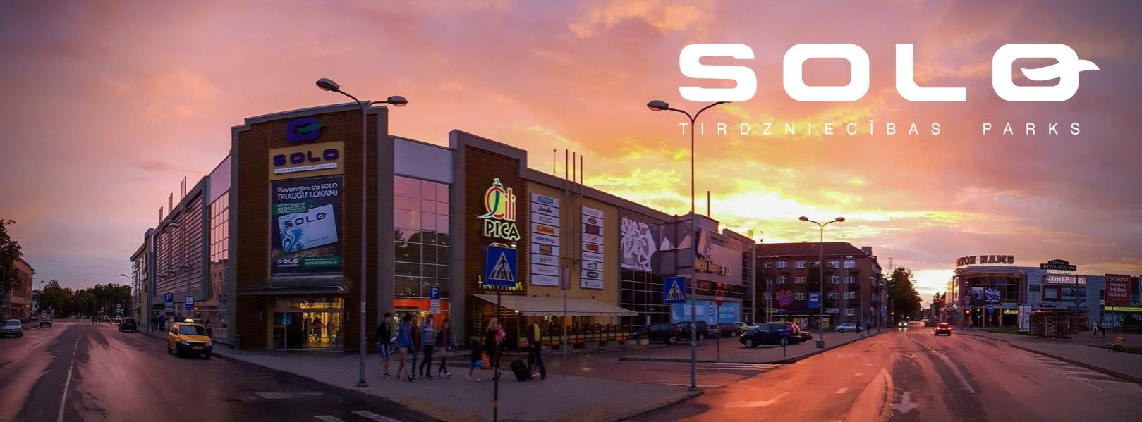 Park handlowy „SOLO” znajduje się w samym centrum Dyneburga, w jednym kompleksie z hotelem „Park Hotel Latgola”. Jest to nowoczesne i komfortowe centrum zakupowe, w którym na dwóch piętrach działają zarówno międzynarodowe marki — Lindex, Ecco, Douglas — jak i popularne w Łotwie sklepy, takie jak Stenders i Drogas.