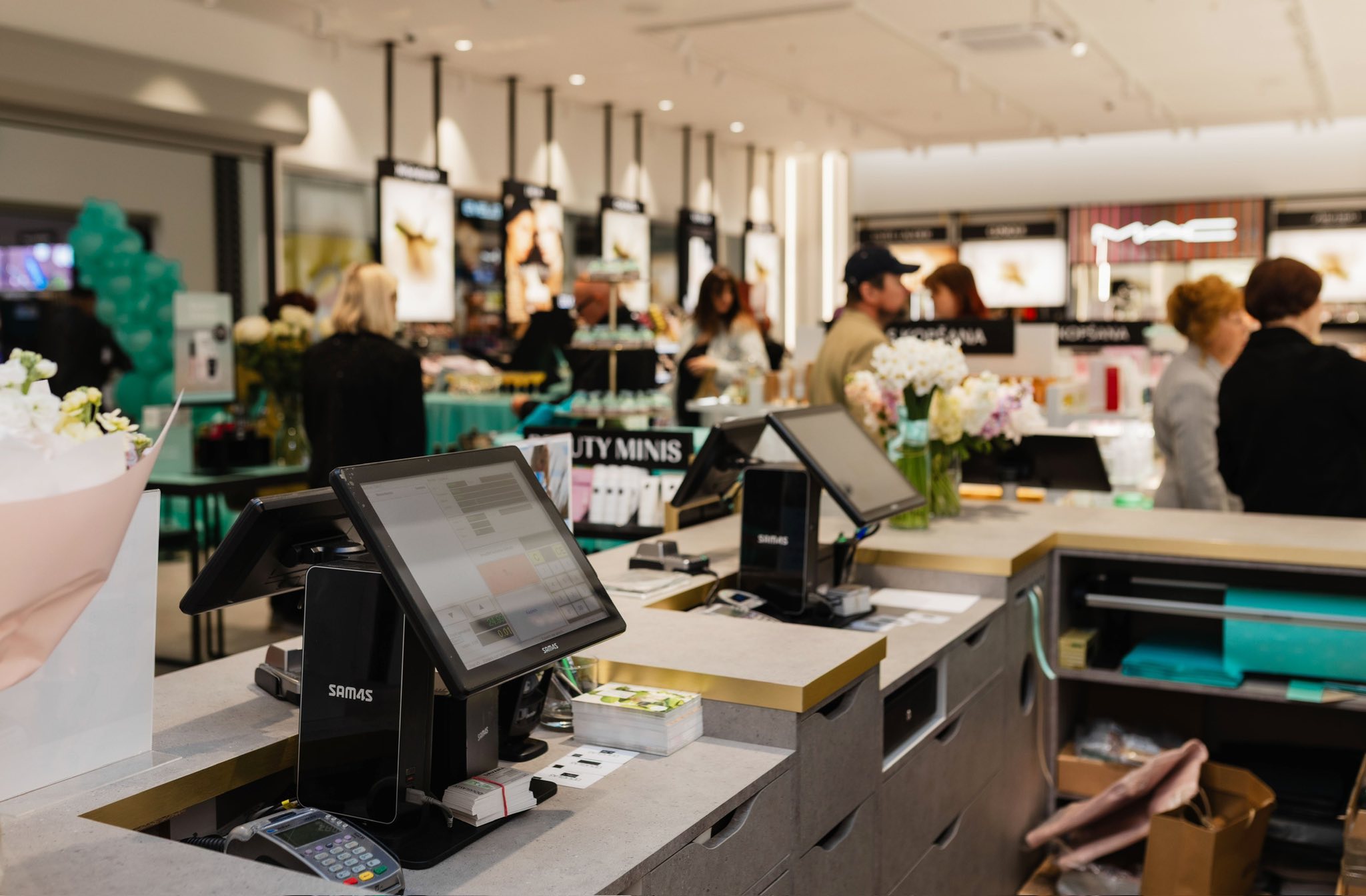 Na terenie parku handlowego znajdują się „Čili pica” oraz restauracja „Happy Panda”, a na parterze działa supermarket „Mego”. Odwiedzający mają również do dyspozycji centrum obsługi klienta „LMT”, a także możliwość zakupu kosmetyków, artykułów gospodarstwa domowego, sprzętu sportowego, książek i wielu innych produktów.