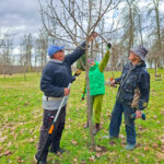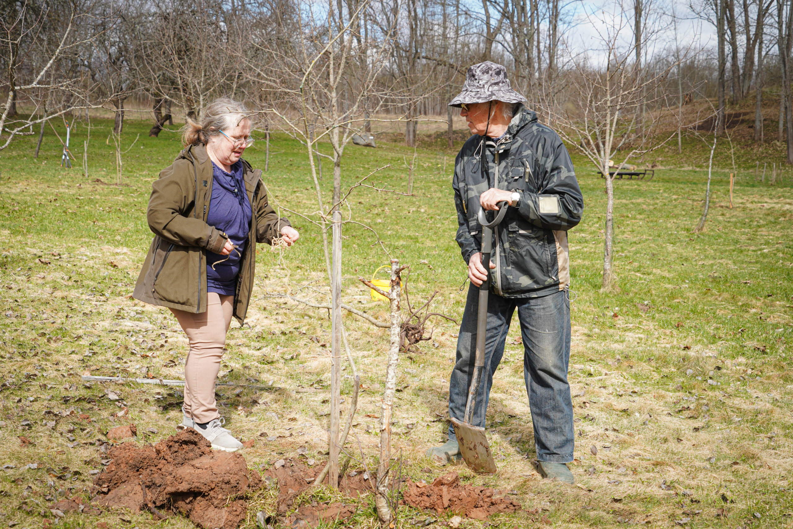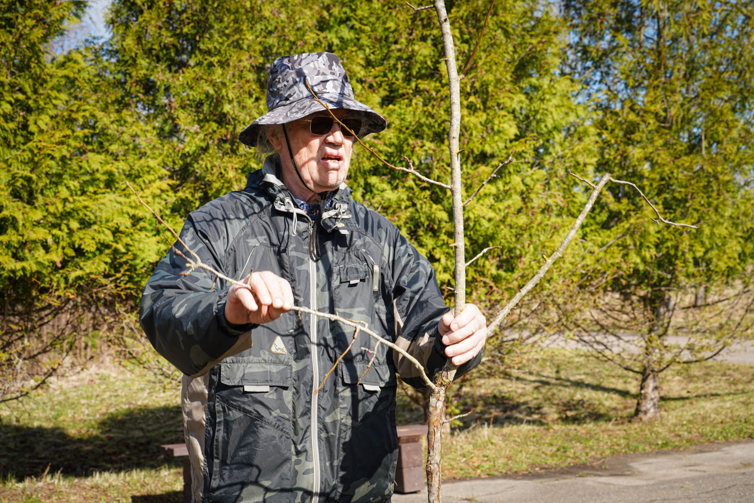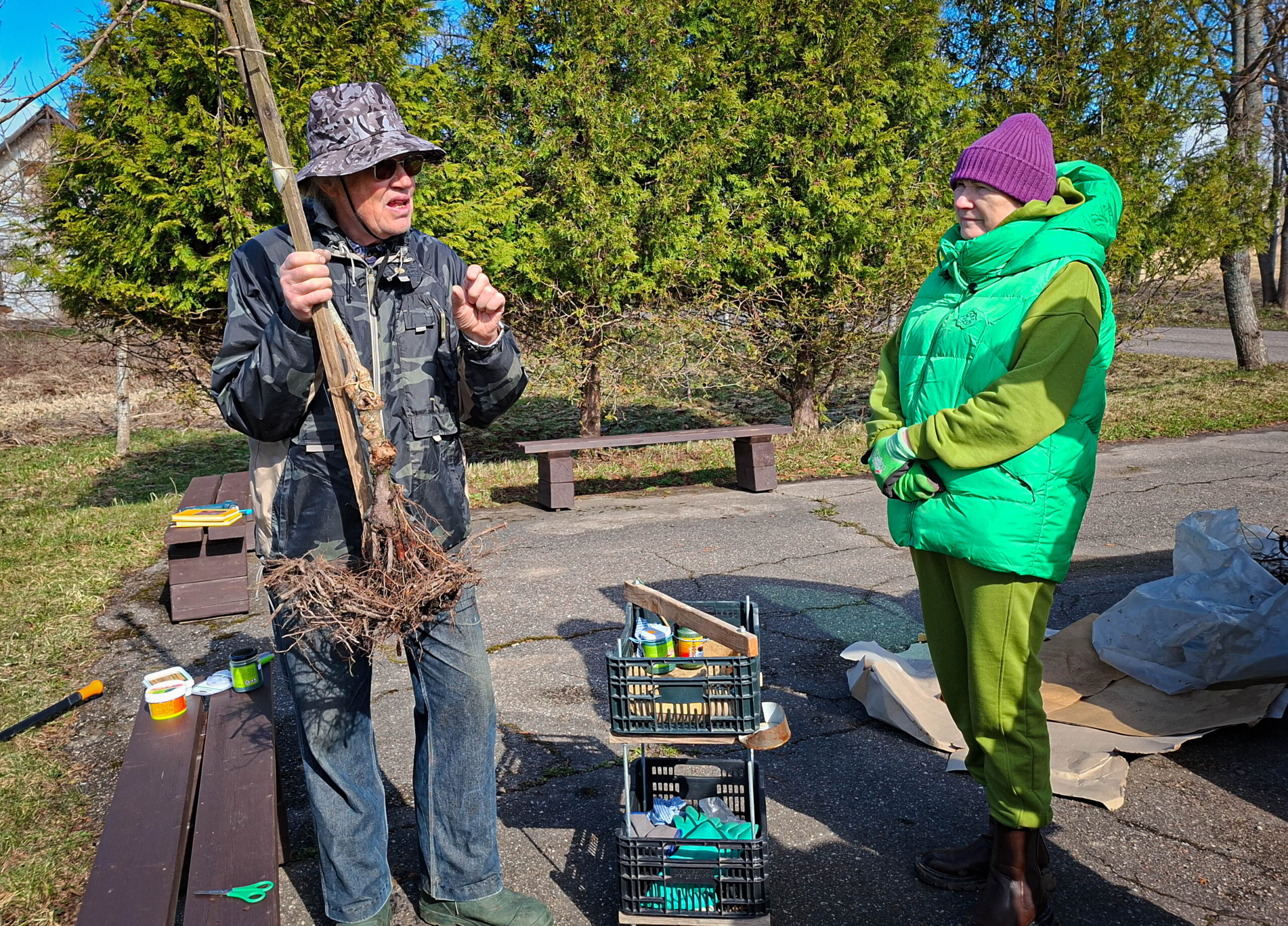 No savas saimniecības augļkopis atveda vairākus ābeļu un bumbieru kociņus, rādīja, kā tiem pareizi apgriezt nevajadzīgos zarus, apstrādāt griezuma vietas, stādīt un piesiet, lai veidotos pareizs koka vainags un taisns stumbrs, kā arī dalījās dažādos citos noderīgos padomos.