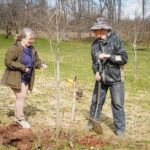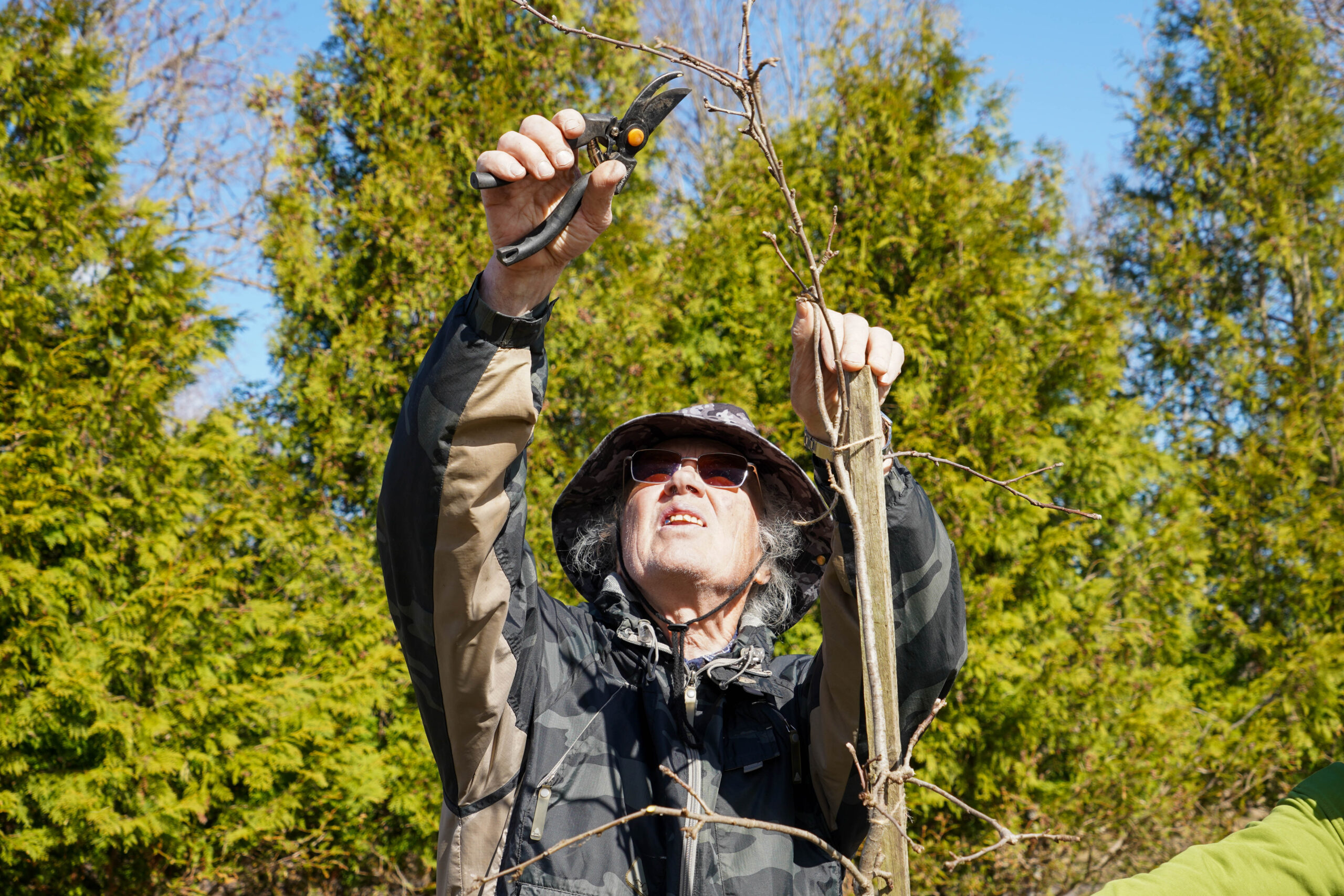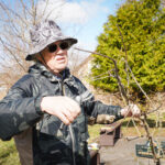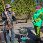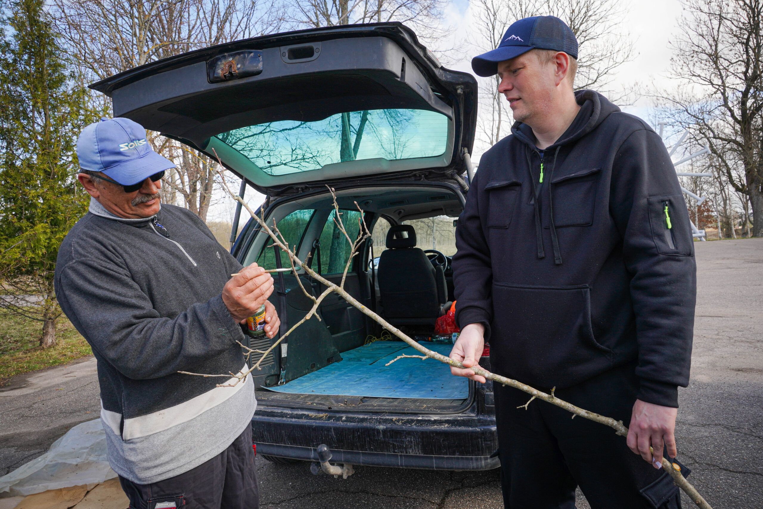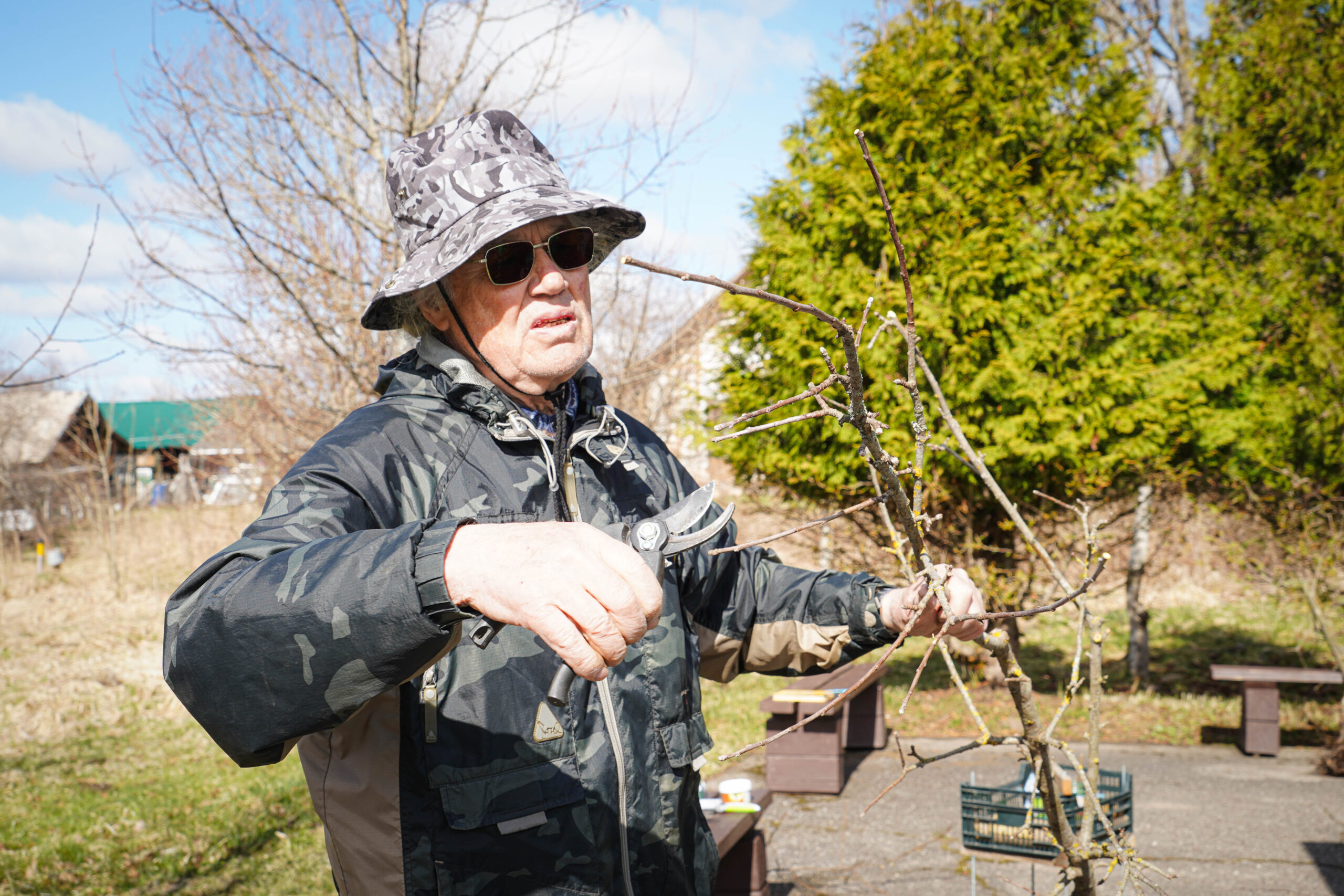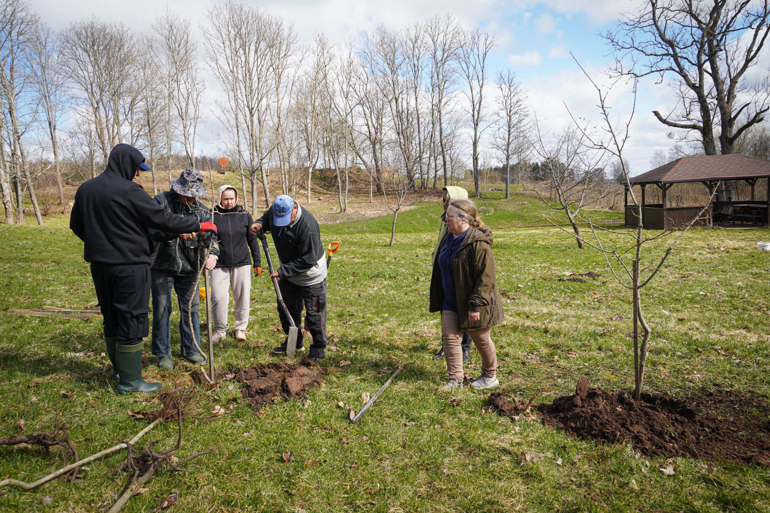 No savas saimniecības augļkopis atveda vairākus ābeļu un bumbieru kociņus, rādīja, kā tiem pareizi apgriezt nevajadzīgos zarus, apstrādāt griezuma vietas, stādīt un piesiet, lai veidotos pareizs koka vainags un taisns stumbrs, kā arī dalījās dažādos citos noderīgos padomos.