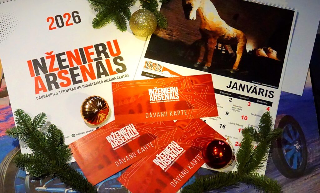 Что это за бонусные подарки? Во-первых, в набор входит новый календарь Инженерного арсенала на 2026 год – стильный и со своим шармом! Во-вторых, приятные мелочи от Даугавпилсского туристического информационного центра. А также кое-что для сладкоежек. Идеальный подарок для ценителей истории и тех, кто ежедневно работает с техникой!