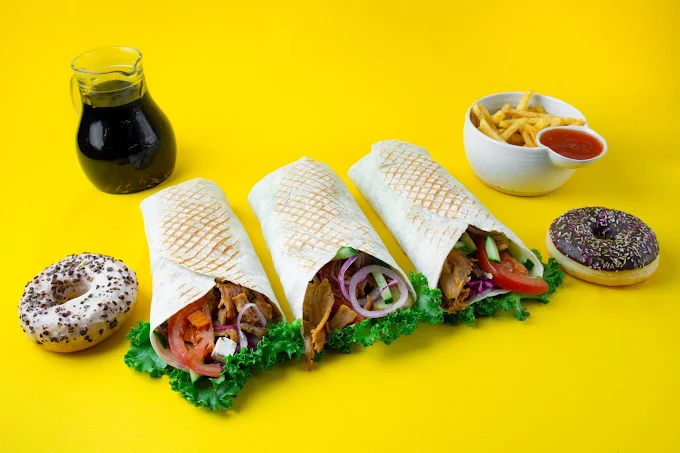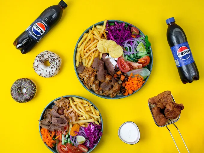 Кафе быстрого питания предлагает кебабы, гамбургеры и картошку фри, закуски и различные напитки. Еду можно заказать на дом или взять c собой.