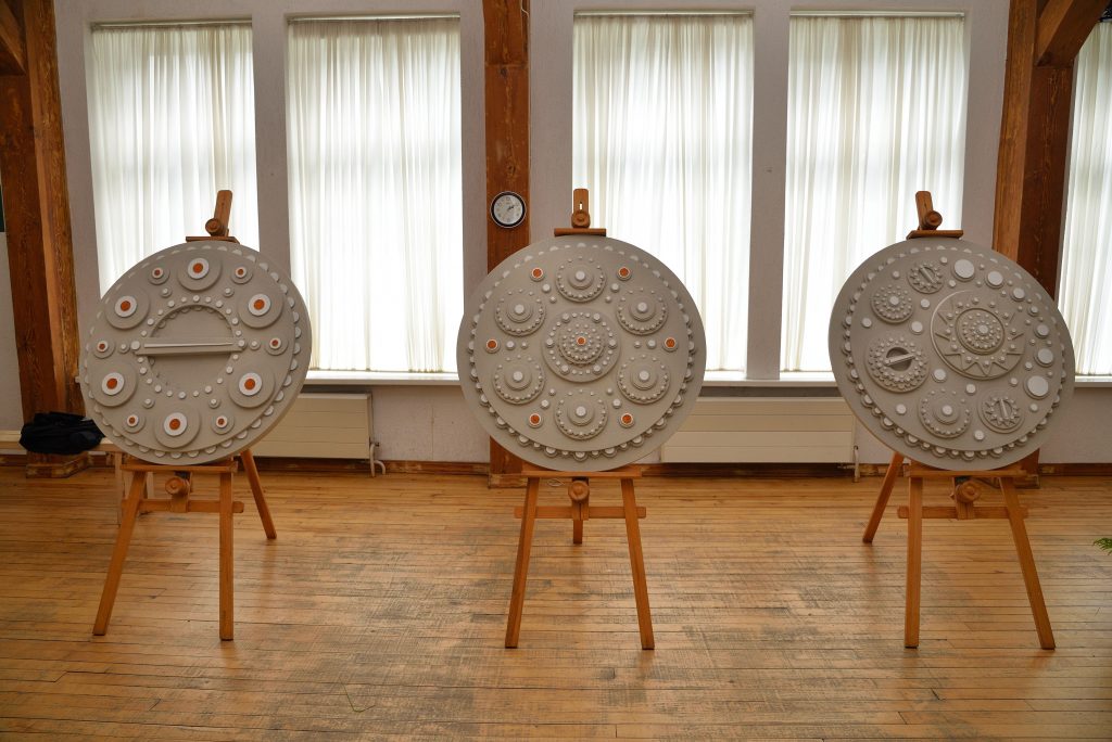 Viktors atzīst, ka ideja veidot saktas nākusi no viņa kolēģes Ilūkstē, kura apjautājusies, vai viņš var izgatavot no putuplasta saktu, kas varētu atrasties ārā. “Tobrīd man nebija ne jausmas, kā to dabūt gatavu, bet nez kāpēc piekritu,” saka meistars. Tuvākās pāris nedēļas pagāja eksperimentējot, līdz ticis līdz vēlamajam rezultātam. Putuplasta detaļas salīmējot, noklājot ar kvarca smiltīm un nolakojot, var dabūt dekoru, kas ir izturīgs arī āra apstākļos un izskatās ļoti smalks. Gatavos darbus Viktors nekrāso, jo kvarca smiltis mākslas darbiem piešķir pelēcīgu toni, kas atgādina linu audeklu.