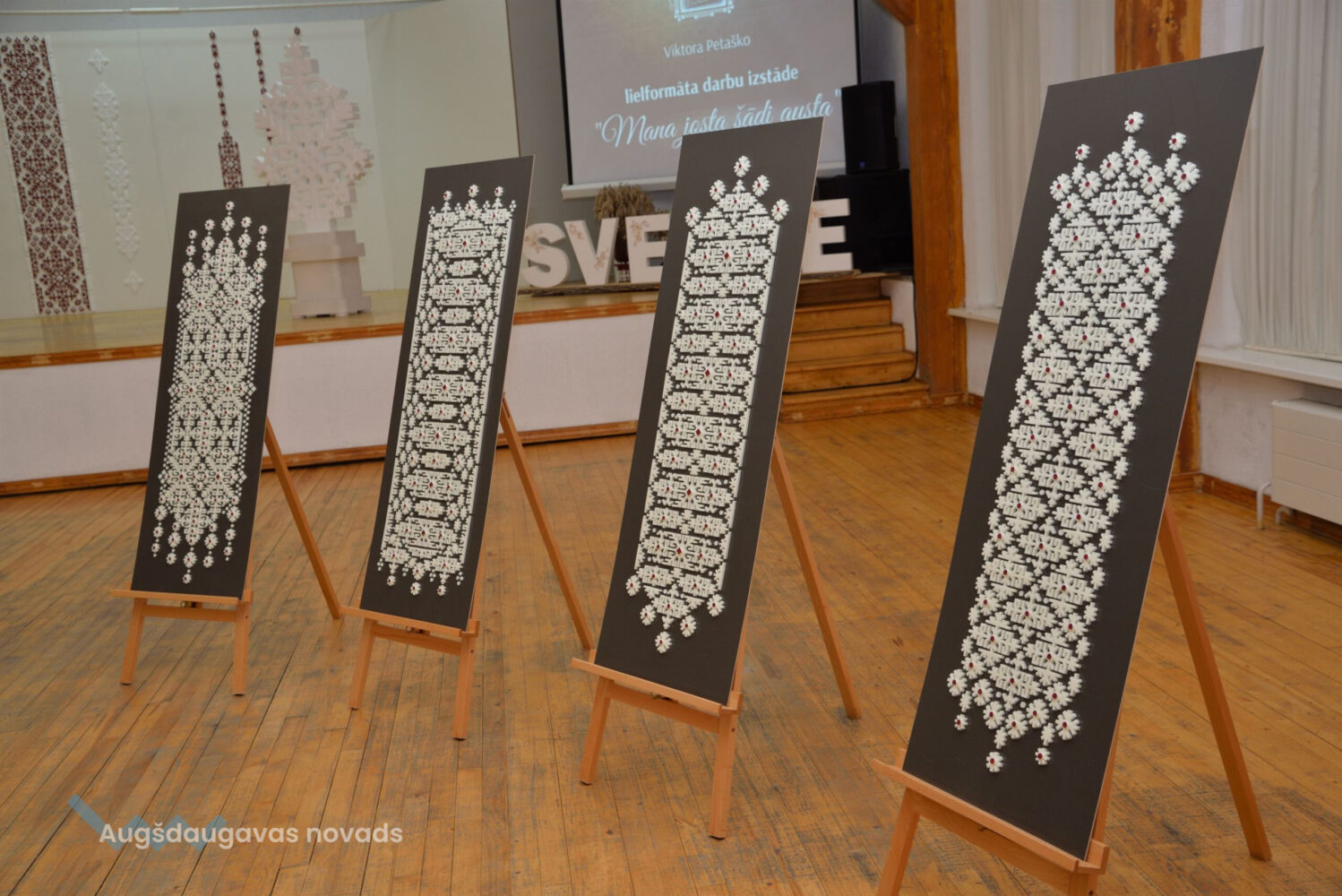 Sventes Tautas namā tika svinīgi atklāta Viktora Petaško lielformāta darbu izstāde “Mana josta šādi austa”. Autora unikālās kompozīcijas no putuplasta ieskandina svētku pasākumu ciklu Augšdaugavas novadā, kas veltīti valsts svētkiem.