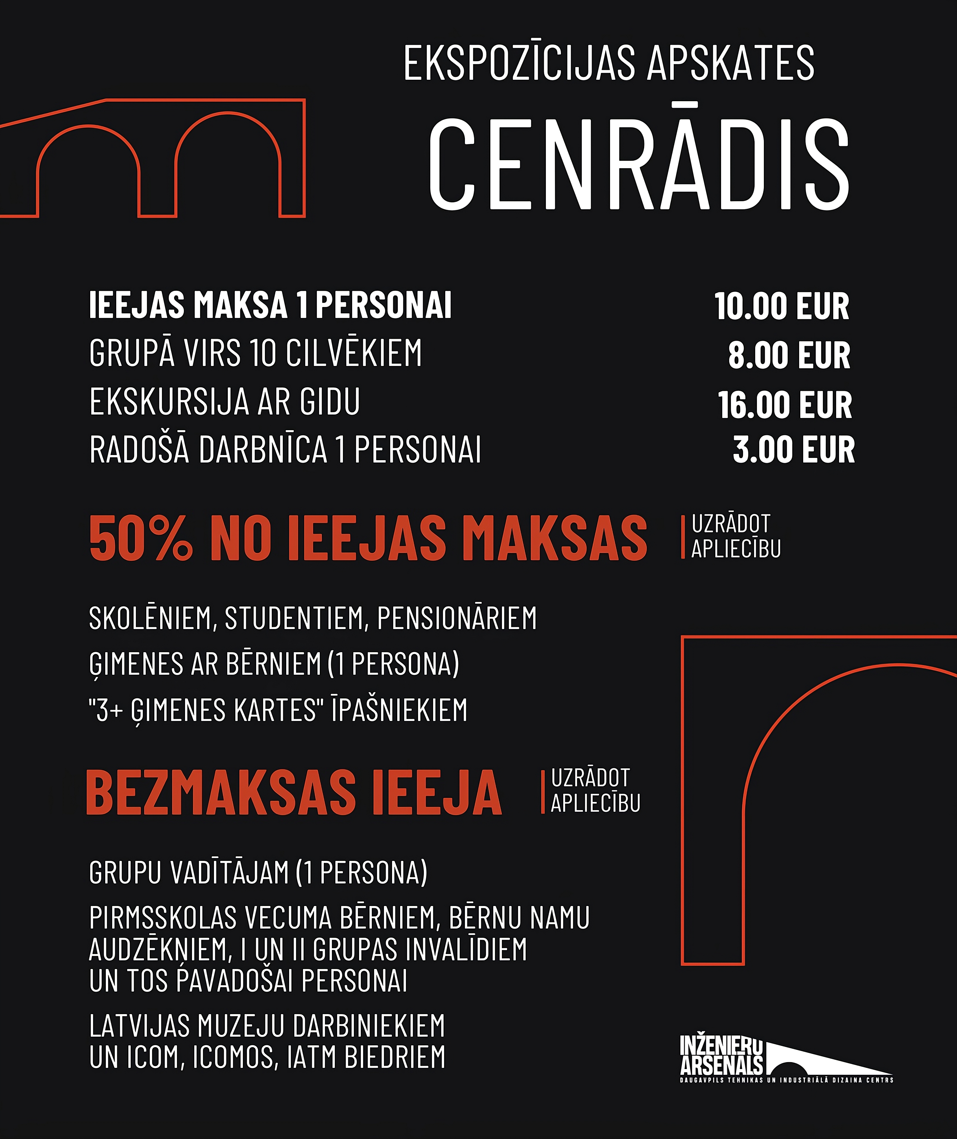 – “Inženieru arsenāla” iekšpagalma apmeklējumu;