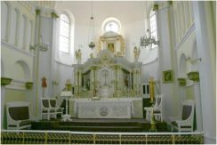 Baznīcas labajā pusē ir melns ozolkoka altāris, kas pārvests no Dubnas kapelas. 1937. gadā veco koka baznīcu Višķos nojauca. To pārveda uz Valmieru un tur uzstādīja no jauna. Tā trešo reizi šo baznīcu pārbūvēja. Tagad tajā ir izdarītas būtiskas izmaiņas. Vecās koka baznīcas vietā vēl ir pagrabi, kur atrodas muižnieku Molu kapu kapenes. Pie šīs baznīcas dārzā apbedīti prāvesti F.Sandra un J.Kesmins. Pie jaunās mūra baznīcas dārzā ir apbedīts prāvests S.Litaunieks. Daži apgalvo, ka Višķos dzīvojuši četri baznīckungi. Žēl, ka nepiemin laiku un gadu, kad tas bijis. Kādreiz prāvests B.Veržbickis stāstīja, ka viduslaikos Višķos bijusi bīskapa baznīca. Šo domu apstiprina arī kāds 1310. gada dokuments, kurā rakstīts, ka Latgalē bijusi sava diecēze un tā būtu meklējama starp Kalupi un Višķiem. Tās nosaukums dokumentos minēts kā “epixopatus Versowensis” un diacēze “Columniensis”. Balstoties uz šo dokumentu, daži domā, ka bīskapa katedrāle bijusi Višķos.